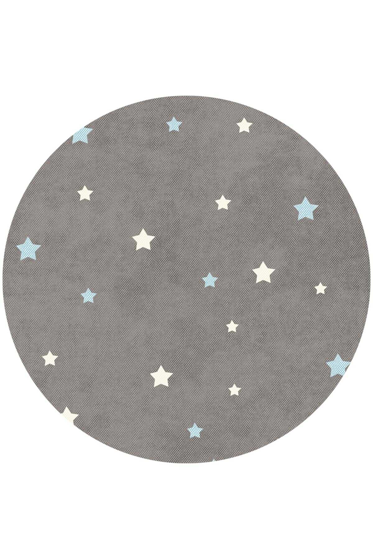 Frenda Home Yıldız Desenli Deri Taban Yuvarlak Çocuk ve Bebek Odası Halısı Mavi