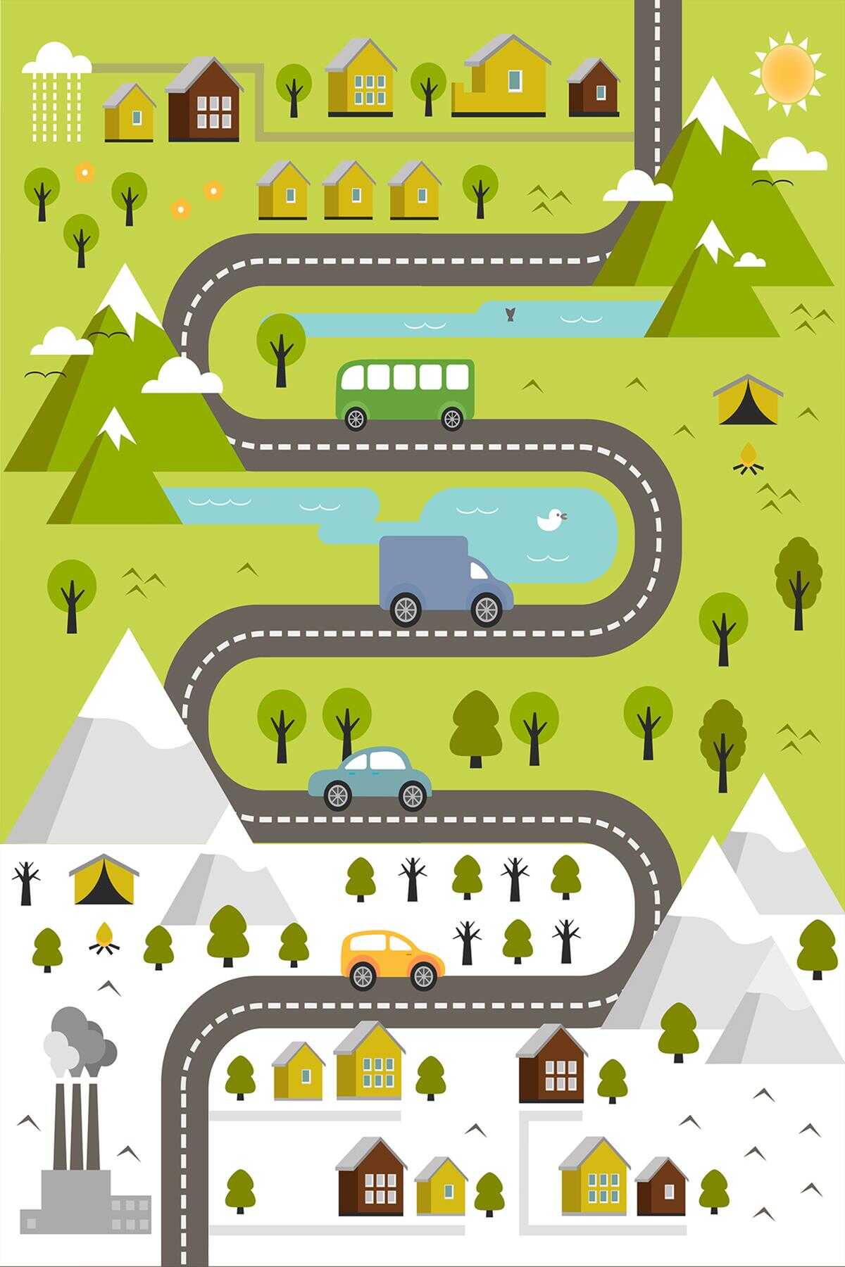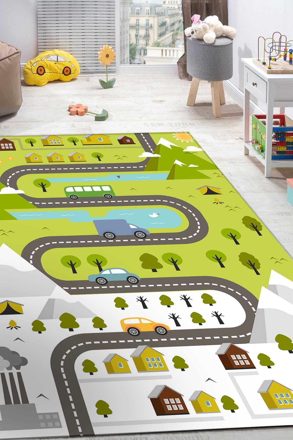 Frenda Home Yol Desenli Yeşil Kaymaz Deri Taban Oyun Halısı