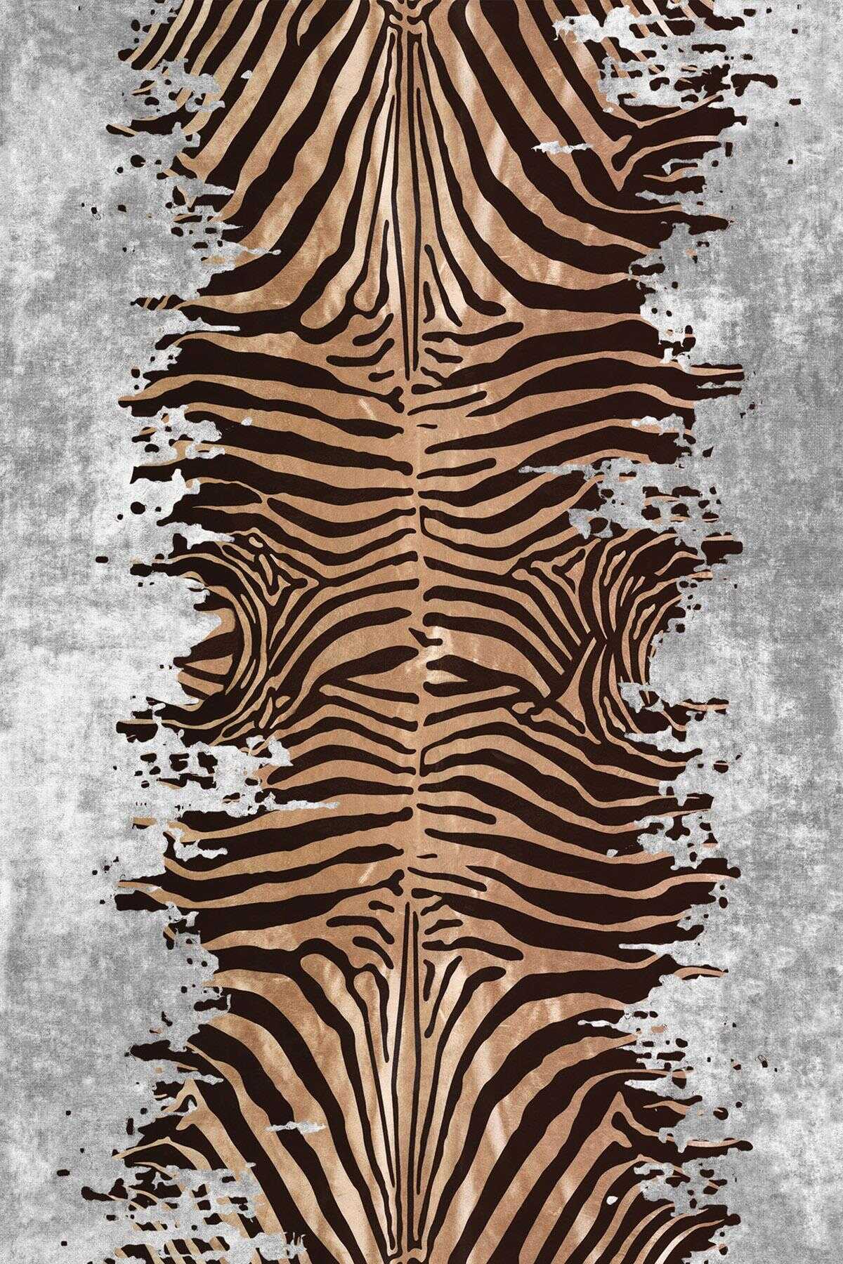 Frenda Home Zebra Desen Pamuk Taban Baskılı Halı Gri