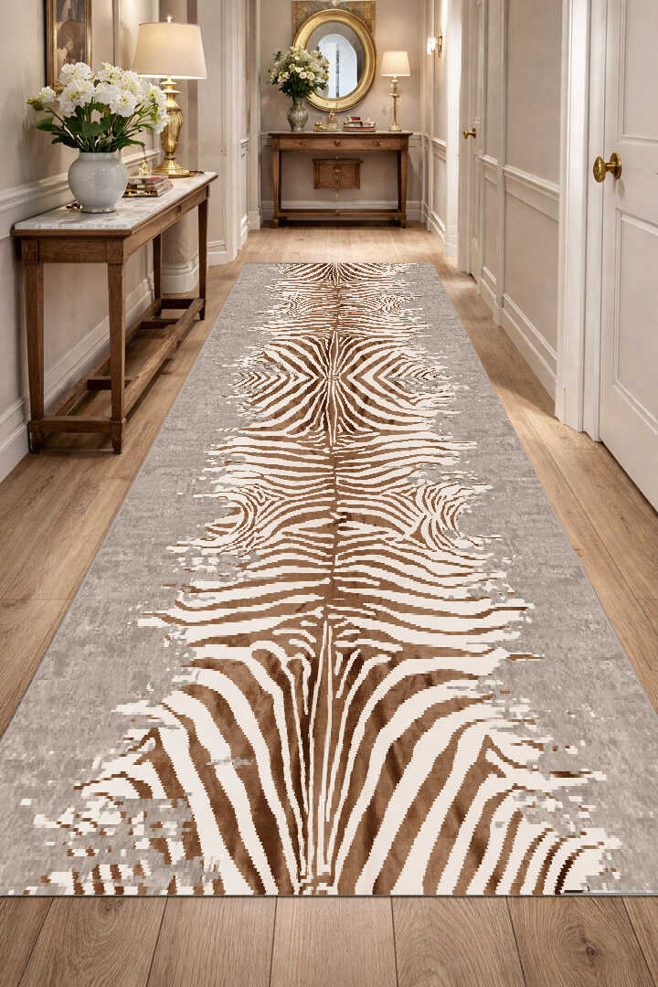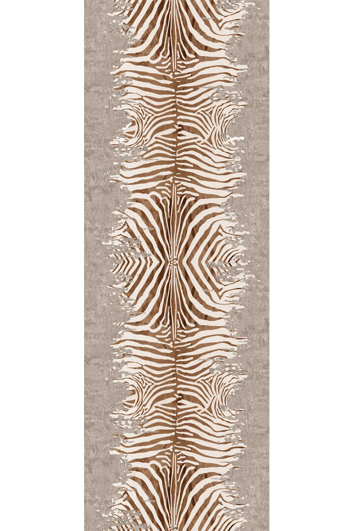 Frenda Home Zebra Desen Pamuk Taban Baskılı Kesme Yolluk Halı Bej