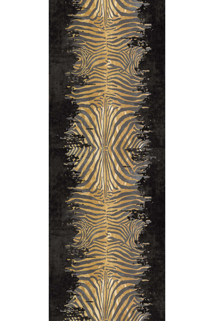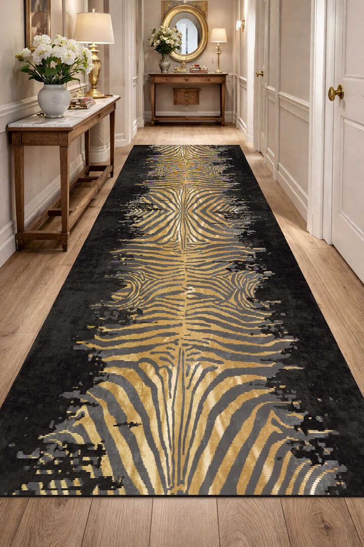 Frenda Home Zebra Desen Pamuk Taban Baskılı Kesme Yolluk Halı Siyah