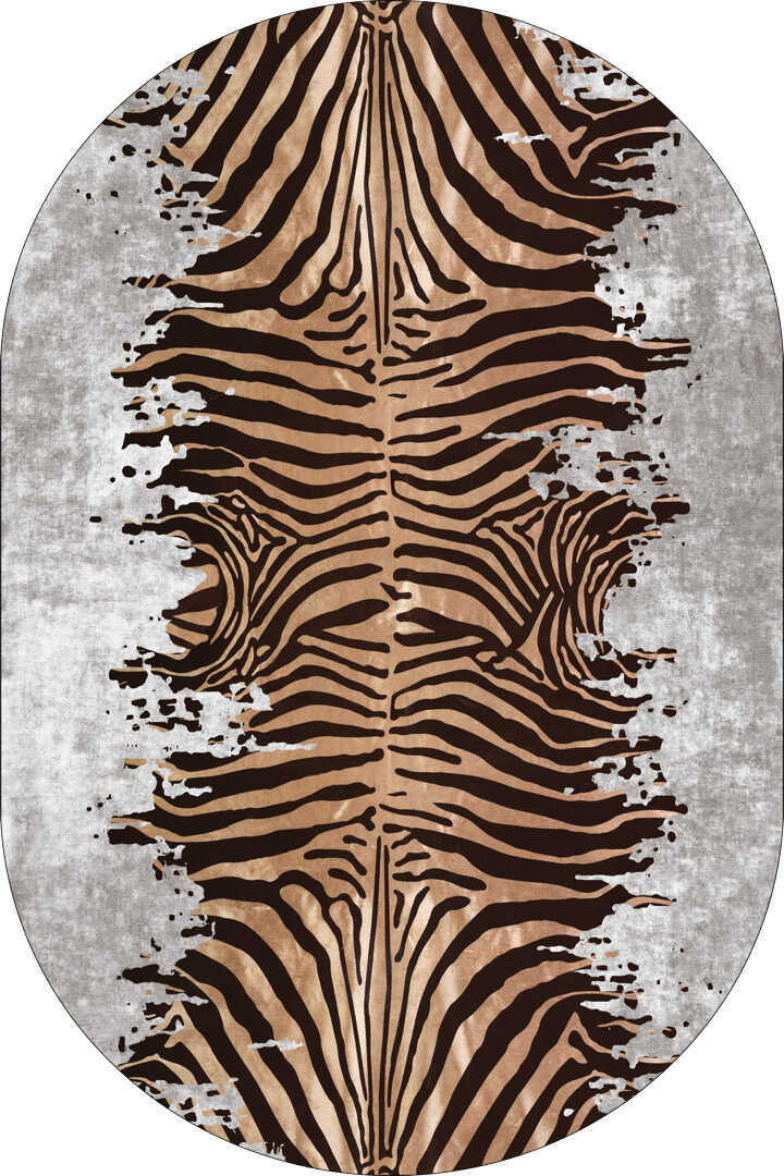 Frenda Home Zebra Desen Pamuk Taban Baskılı Oval Halı Gri