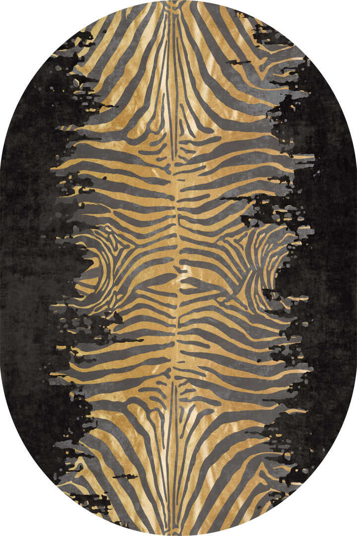 Frenda Home Zebra Desen Pamuk Taban Baskılı Oval Halı Siyah