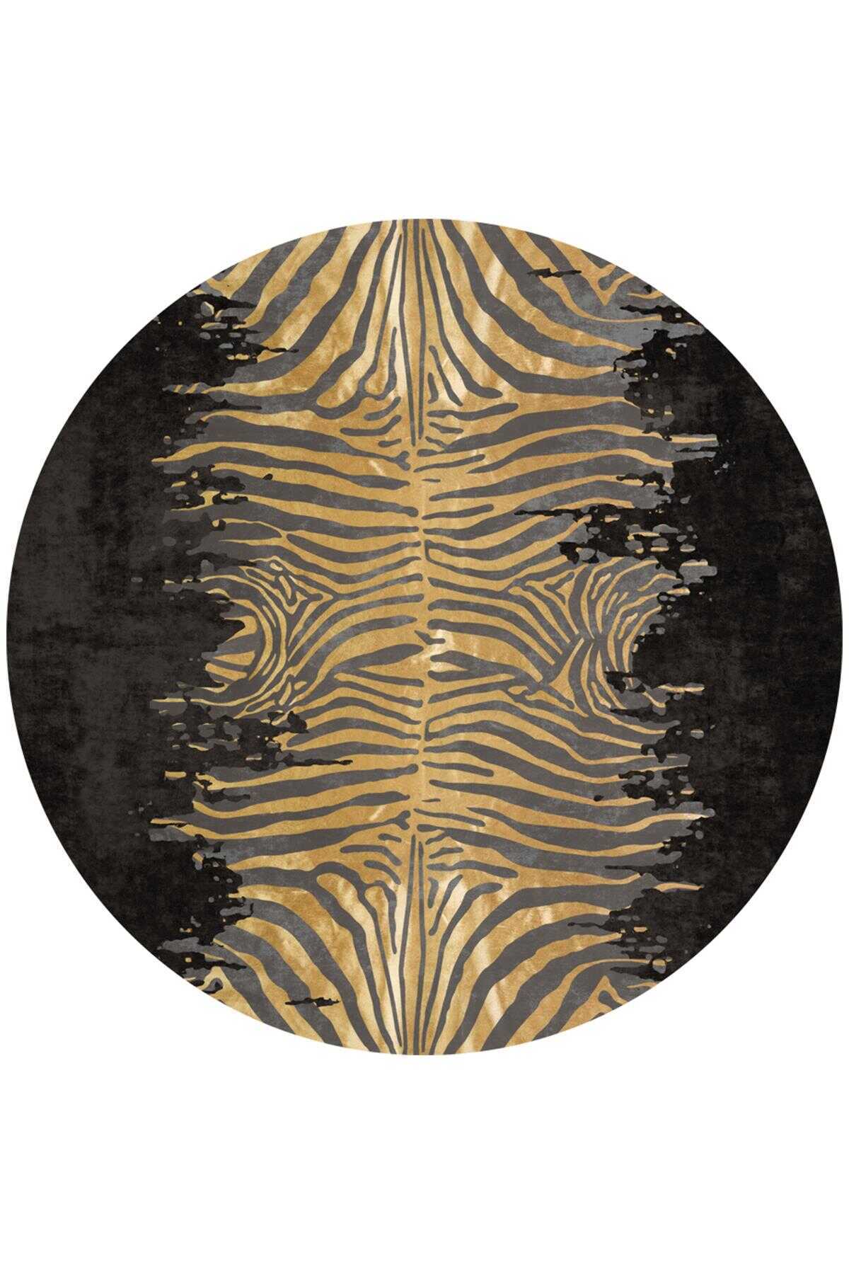 Frenda Home Zebra Desen Pamuk Taban Baskılı Yuvarlak Halı Siyah