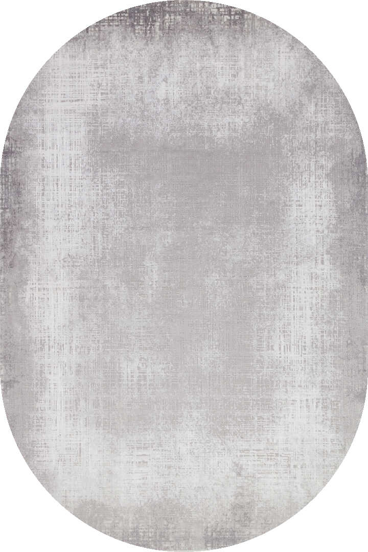 Geometrik Abstract Desenli Prato İpeksi Lüks Viskon Oval Halı Pr06 Gri