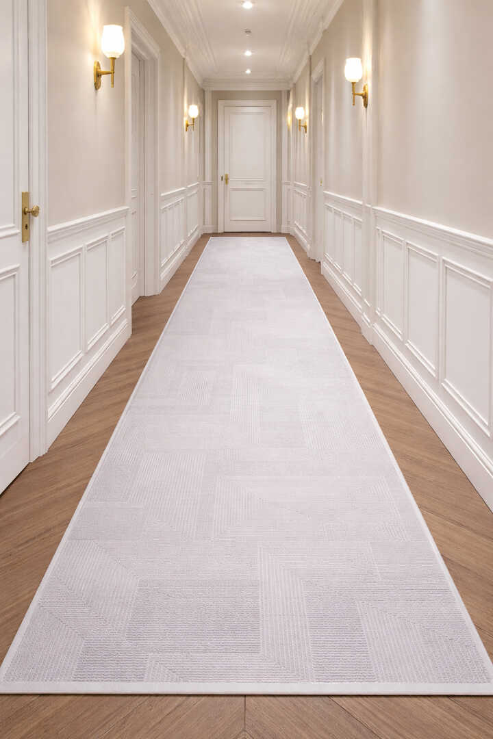 Geometrik Abstract Desenli Prato İpeksi Lüks Viskon Yolluk Özel Ölçü Kesme Halı Pr03 Gri