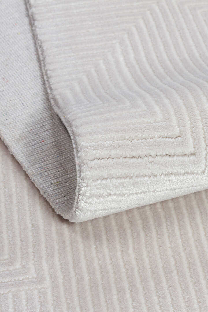 Modern geometrik abstract deseni, ipeksi viskon dokusu, yüksek dokuma sıklığı ve lüks duruşuyla Prato Viskon Halı; salon ve yaşam alanlarında zarif şıklığı, premium hissi ve çağdaş dekorasyonu tek dokunuşta tamamlar.