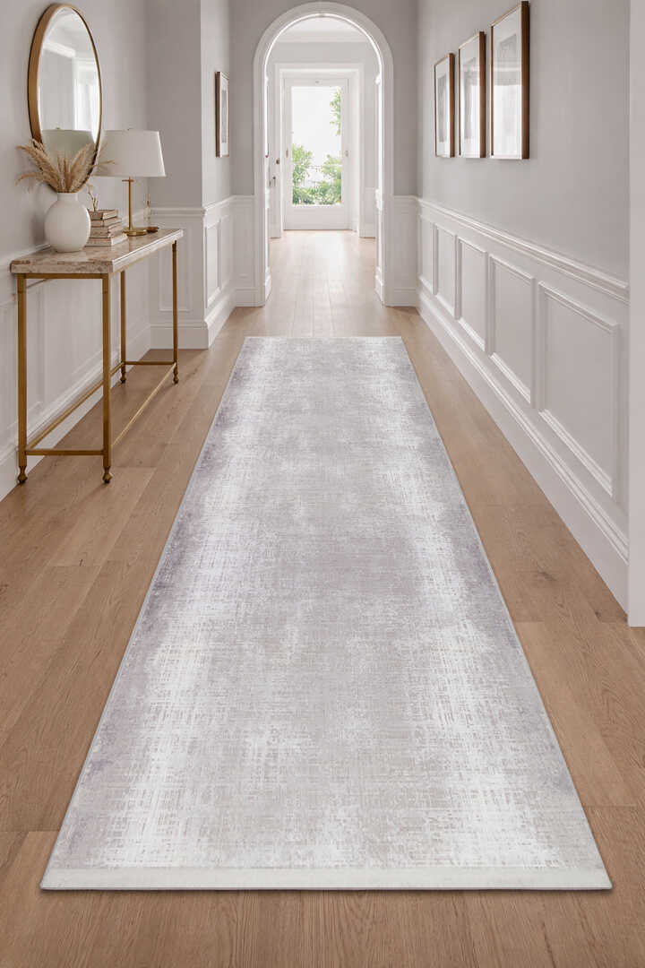 Geometrik Abstract Desenli Prato İpeksi Lüks Viskon Yolluk Özel Ölçü Kesme Halı Pr06 Gri