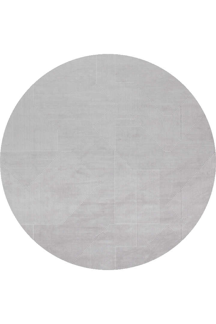 Geometrik Abstract Desenli Prato İpeksi Lüks Viskon Yuvarlak Halı Pr04 Gri