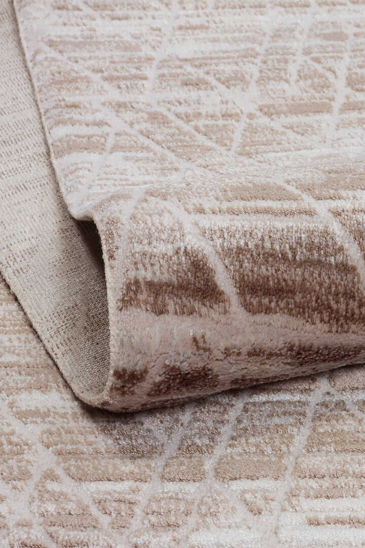 Geometrik Desenli Nar Yumuşak Dokulu Akrilik Oval Halı Nr02 Bej
