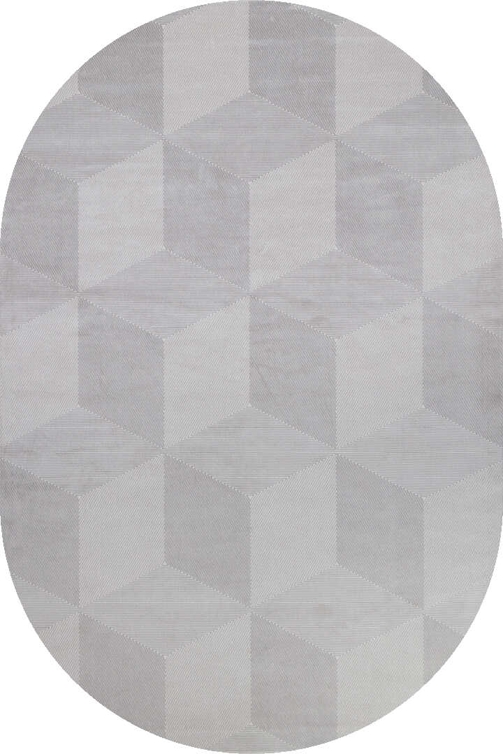 Geometrik Küp Desenli Prato İpeksi Lüks Viskon Oval Halı Pr01 Gri