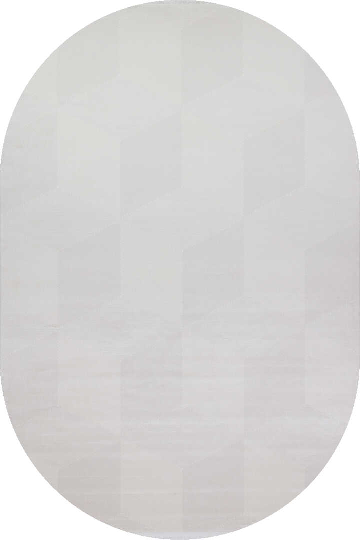 Geometrik Küp Desenli Prato İpeksi Lüks Viskon Oval Halı Pr02 Gri