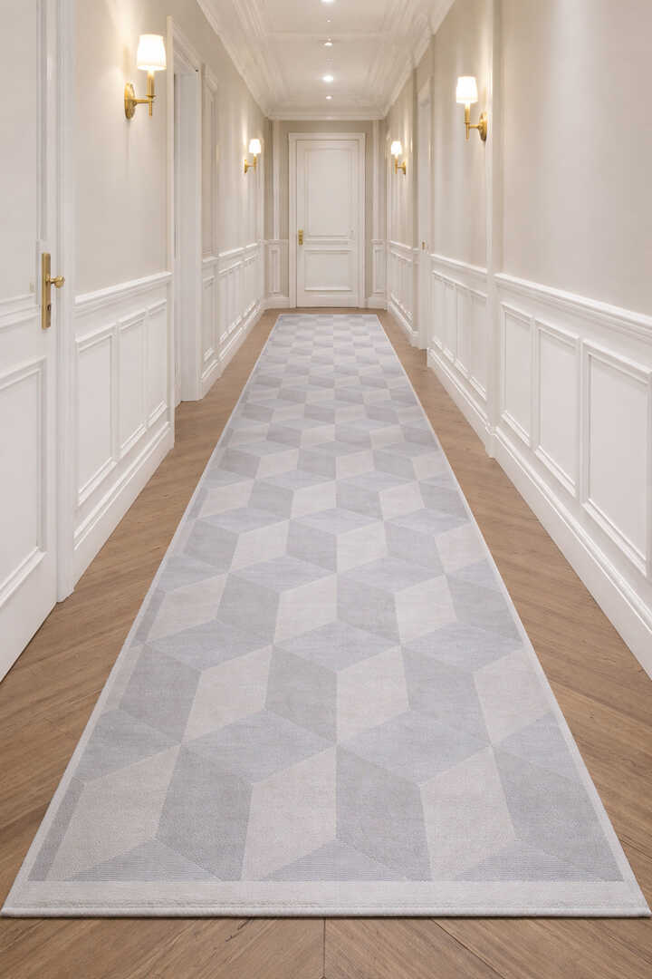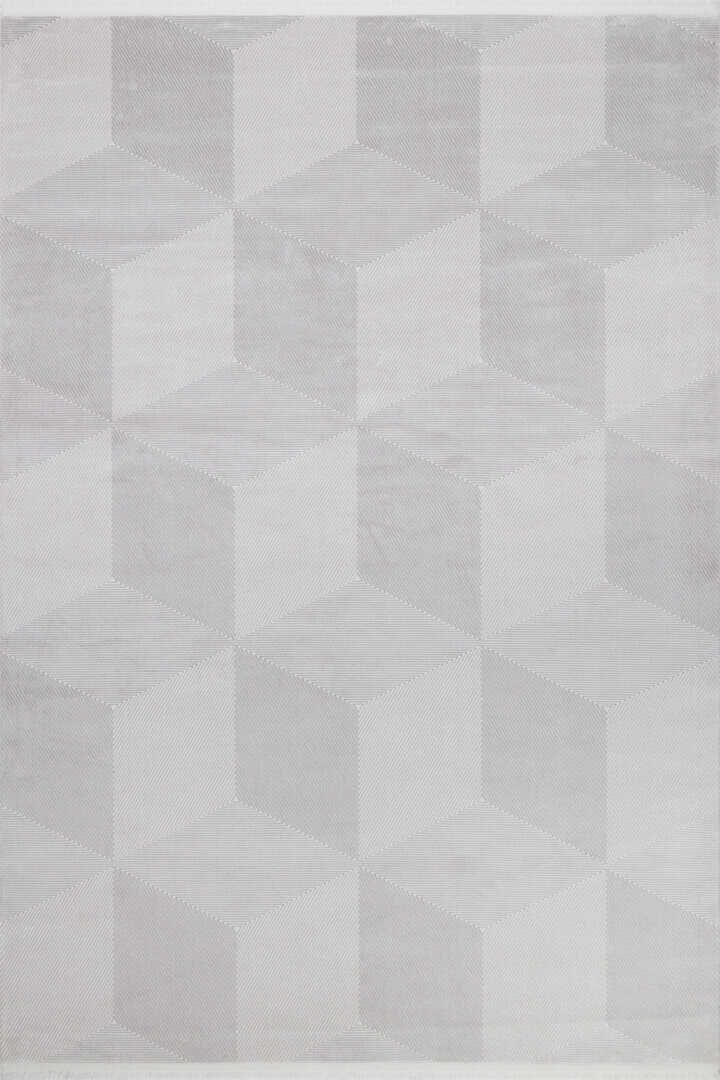 Geometrik Küp Desenli Prato İpeksi Lüks Viskon Yolluk Özel Ölçü Kesme Halı Pr01 Gri
