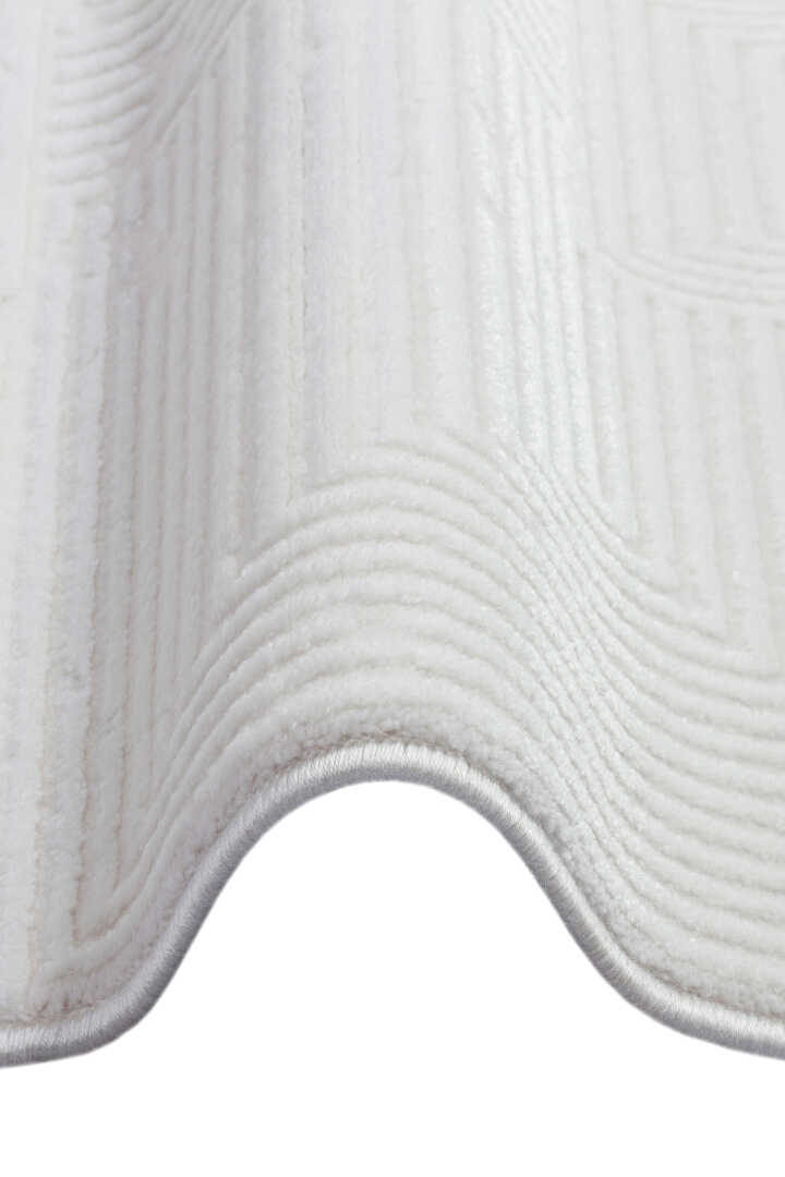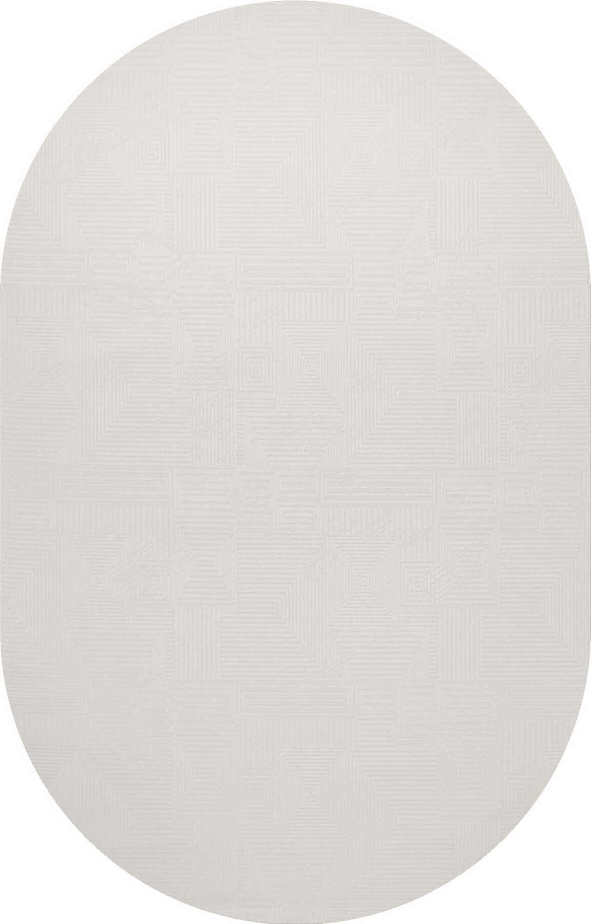 Geometrik Soyut Desenli Oskar Akrilik Makine Oval Halı Os02 Krem