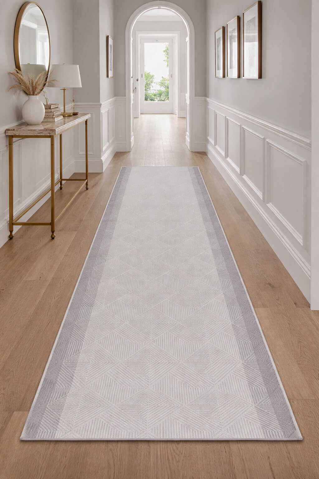 Geometrik Soyut Desenli Oskar Akrilik Makine Yolluk Özel Ölçü Kesme Halı Os01 Krem