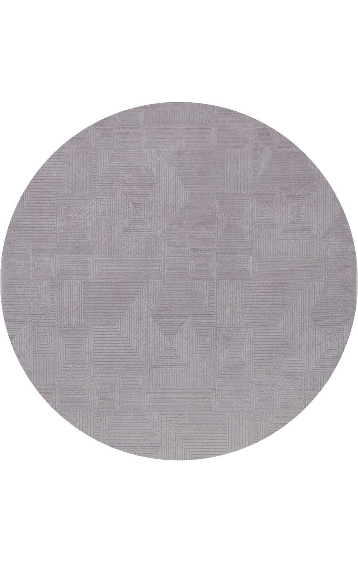 Geometrik Soyut Desenli Oskar Akrilik Makine Yuvarlak Halı Os06 Gri