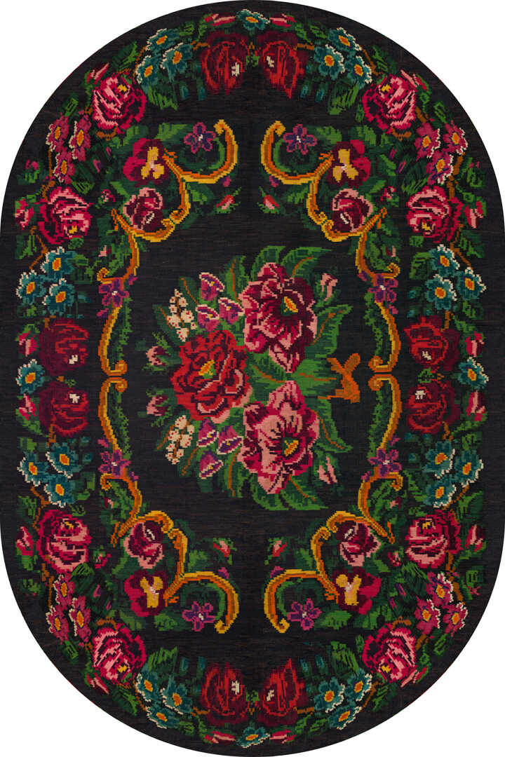 Karabağ Desenli Pamuk Taban Dijital Baskılı Oval Halı