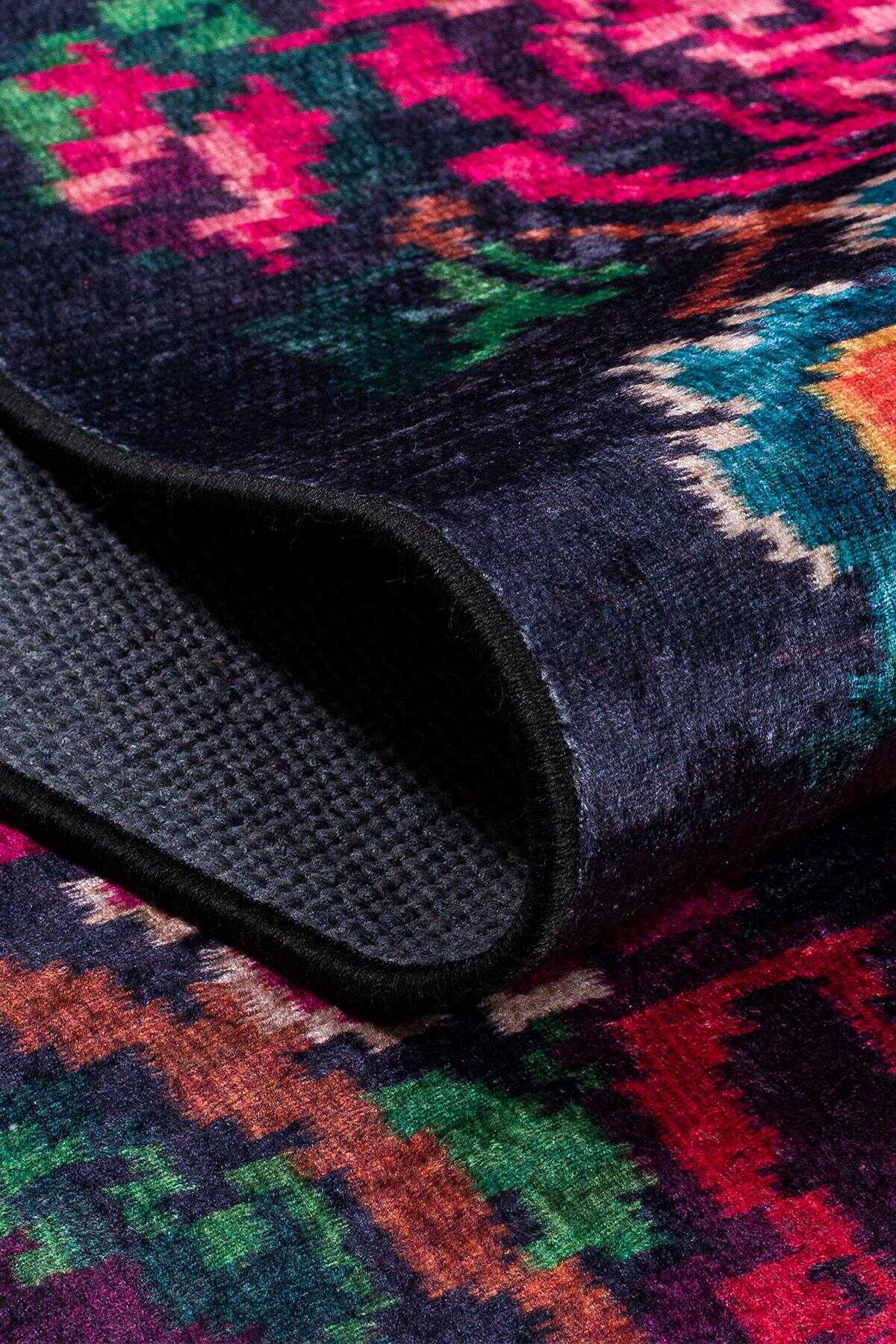 Çamaşır makinesiyle 30 derecede yıkanabilir, renkli baskı halıdır.