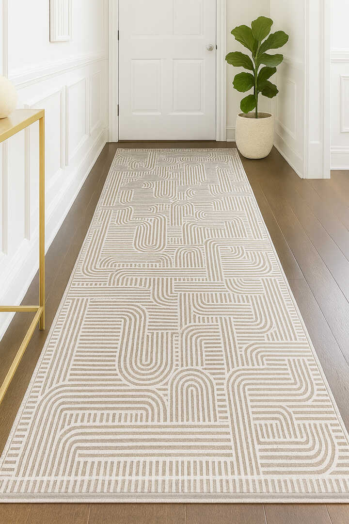 Hayal Yumuşak Kadife Doku Yıkanabilir Kaymaz Dört Mevsim Kişiye Özel Kesme Yolluk Halı Hy08 Bej