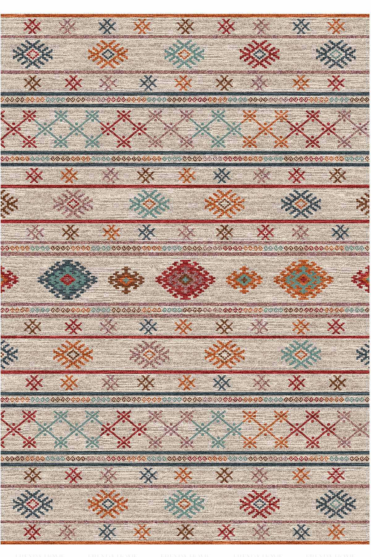 Çamaşır makinesiyle 30 derecede yıkanabilir, renkli baskı halıdır.