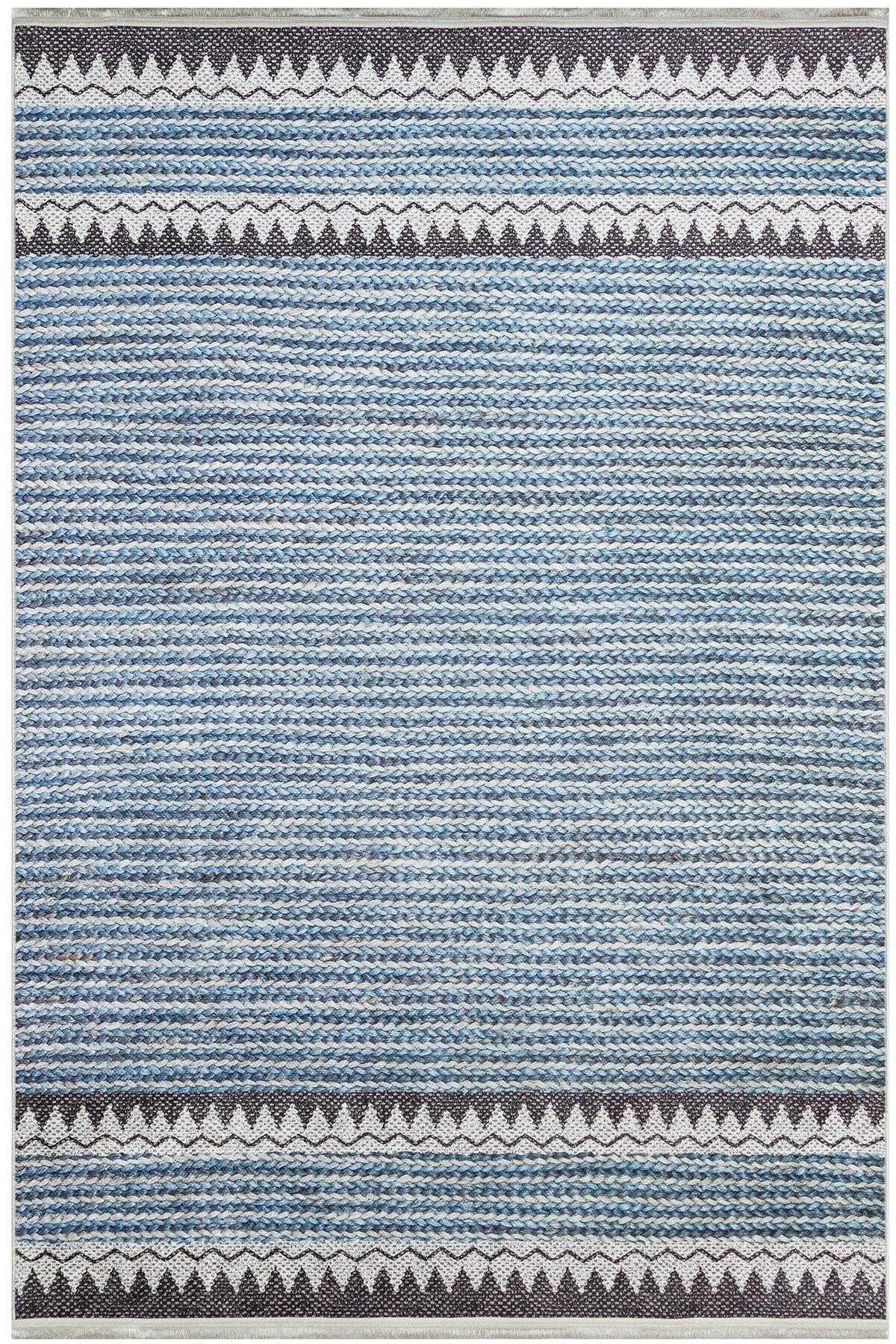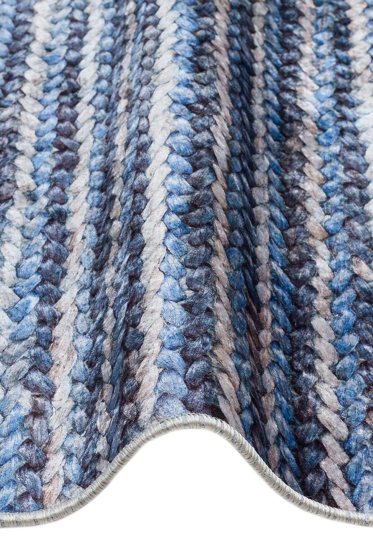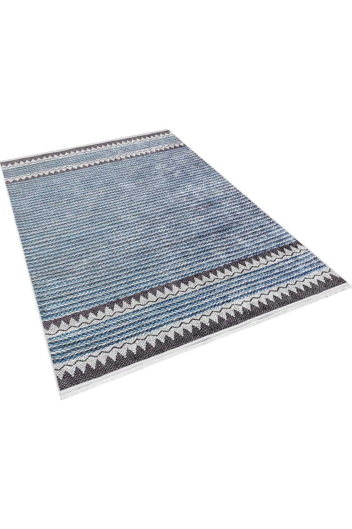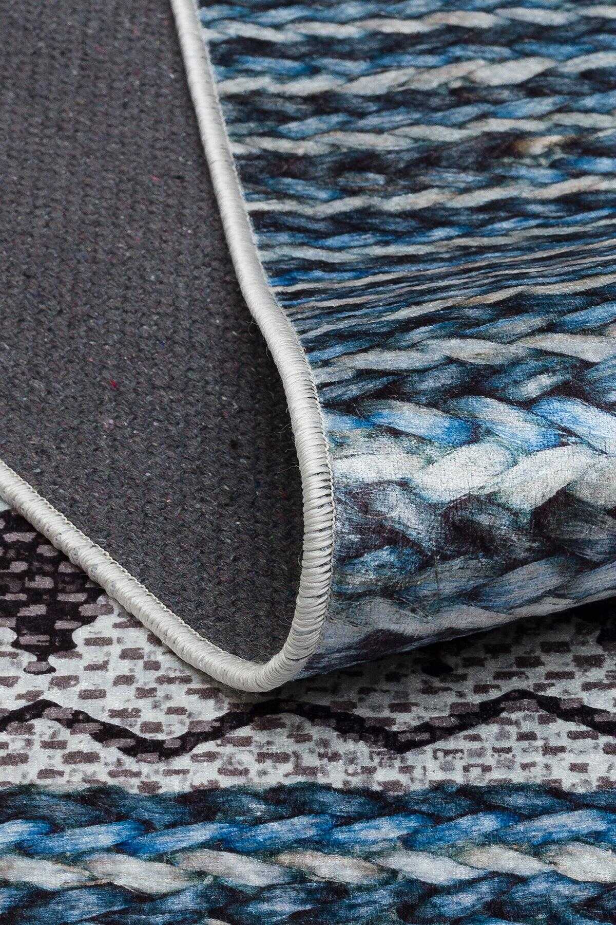 İskandinav Desen Pamuk Taban Dijital Baskılı Dekoratif Halı Mavi