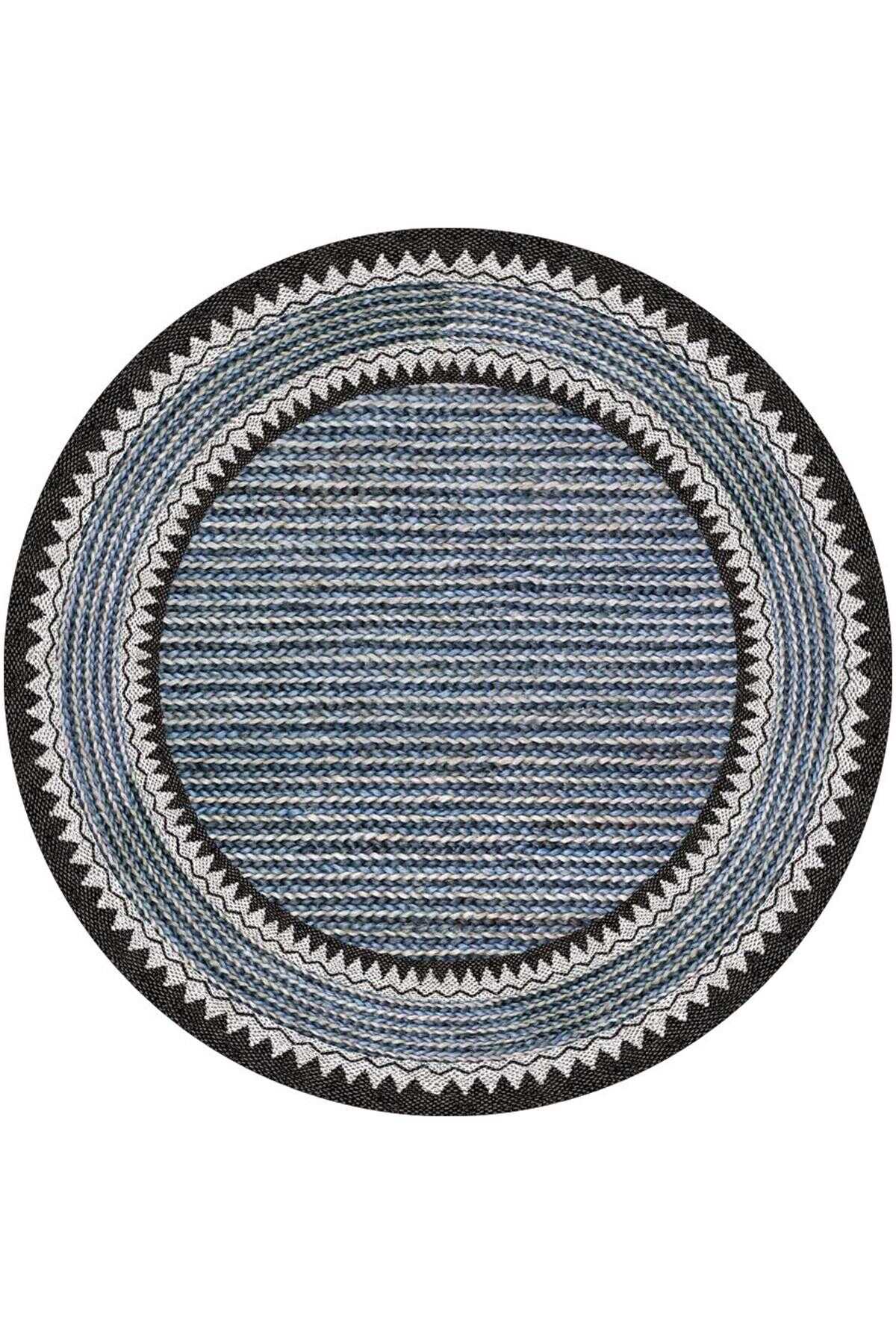 İskandinav Desen Pamuk Taban Dijital Baskılı Dekoratif Yuvarlak Halı Mavi