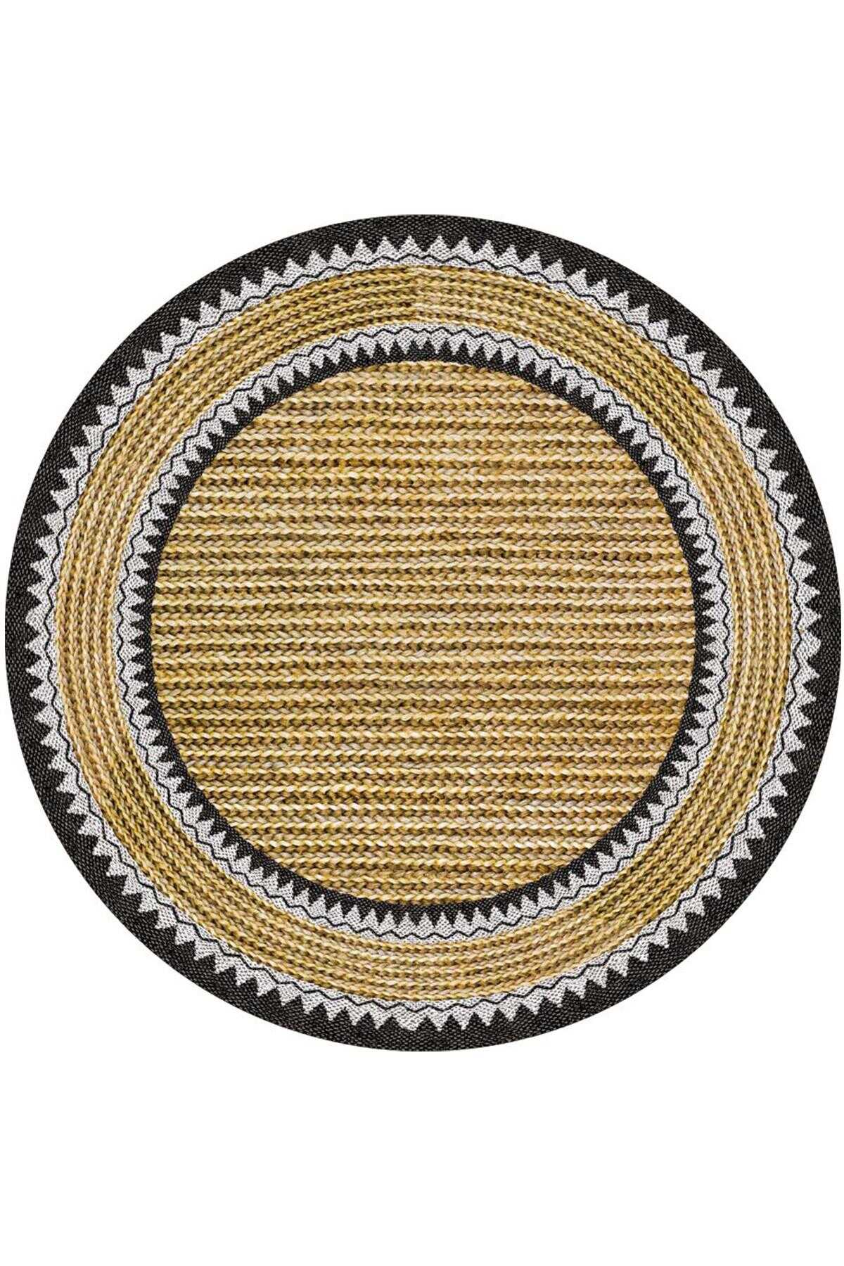 İskandinav Desen Pamuk Taban Dijital Baskılı Dekoratif Yuvarlak Halı Sarı