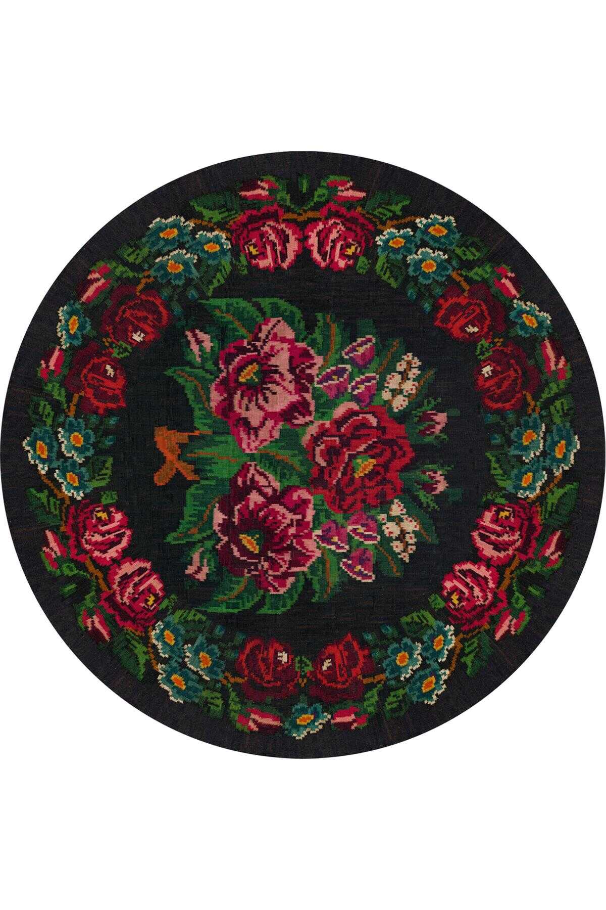 Karabağ Desenli Pamuk Taban Dijital Baskılı Yuvarlak Halı