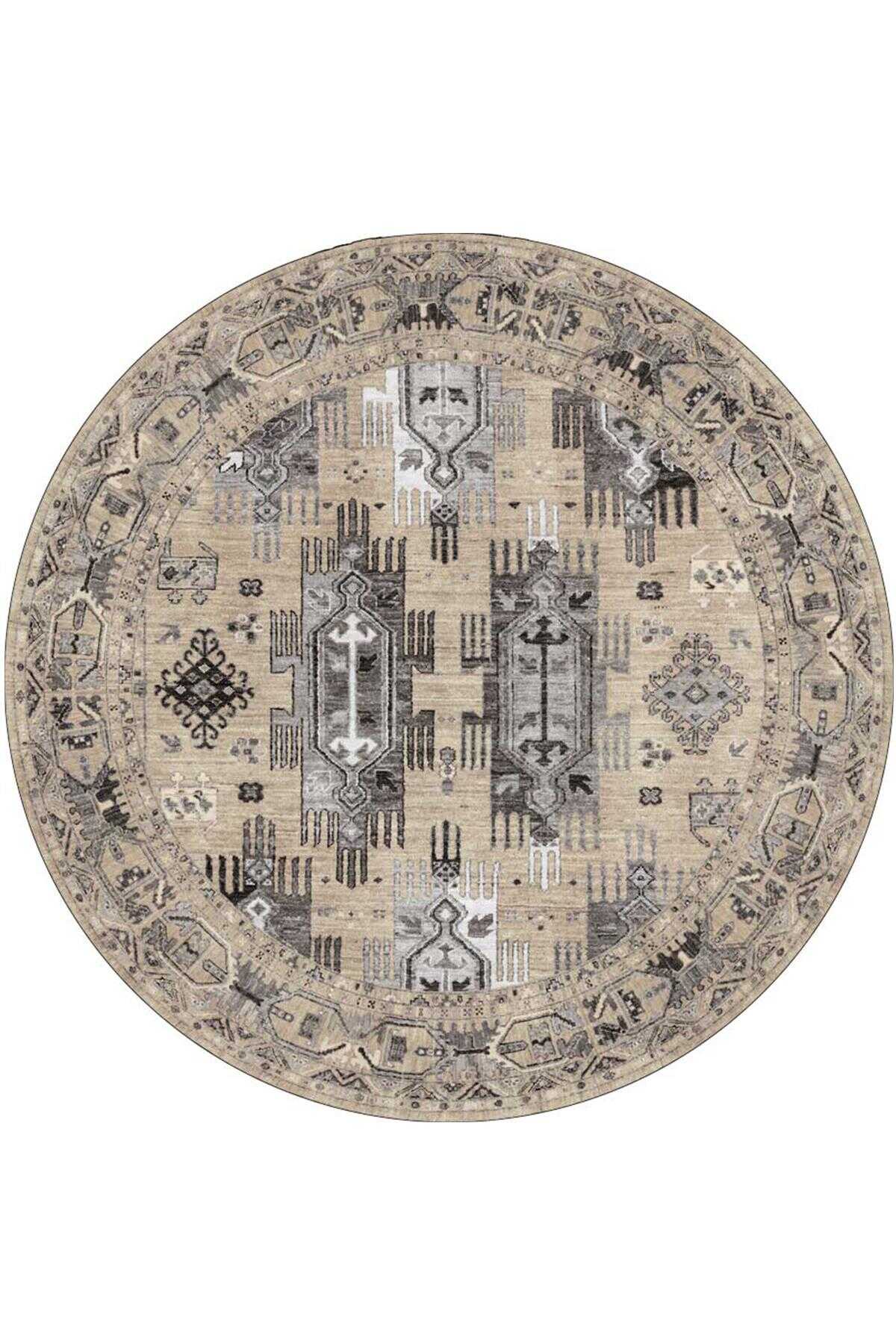 Kilim Desen Pamuk Taban Dijital Baskılı Yuvarlak Halı Krem