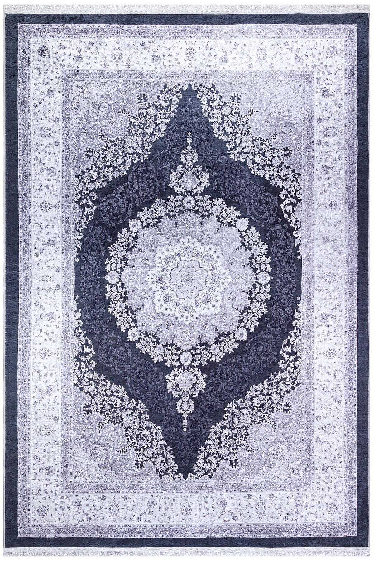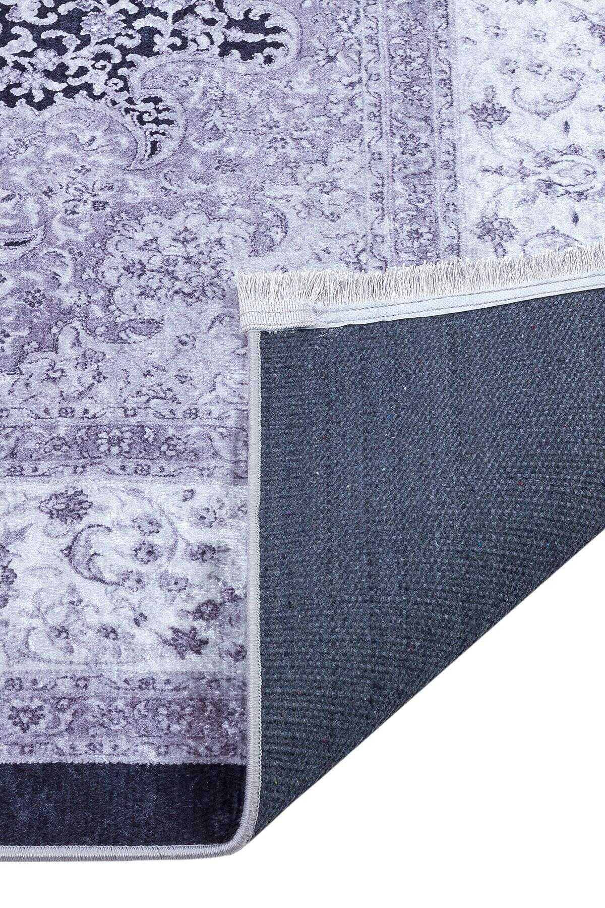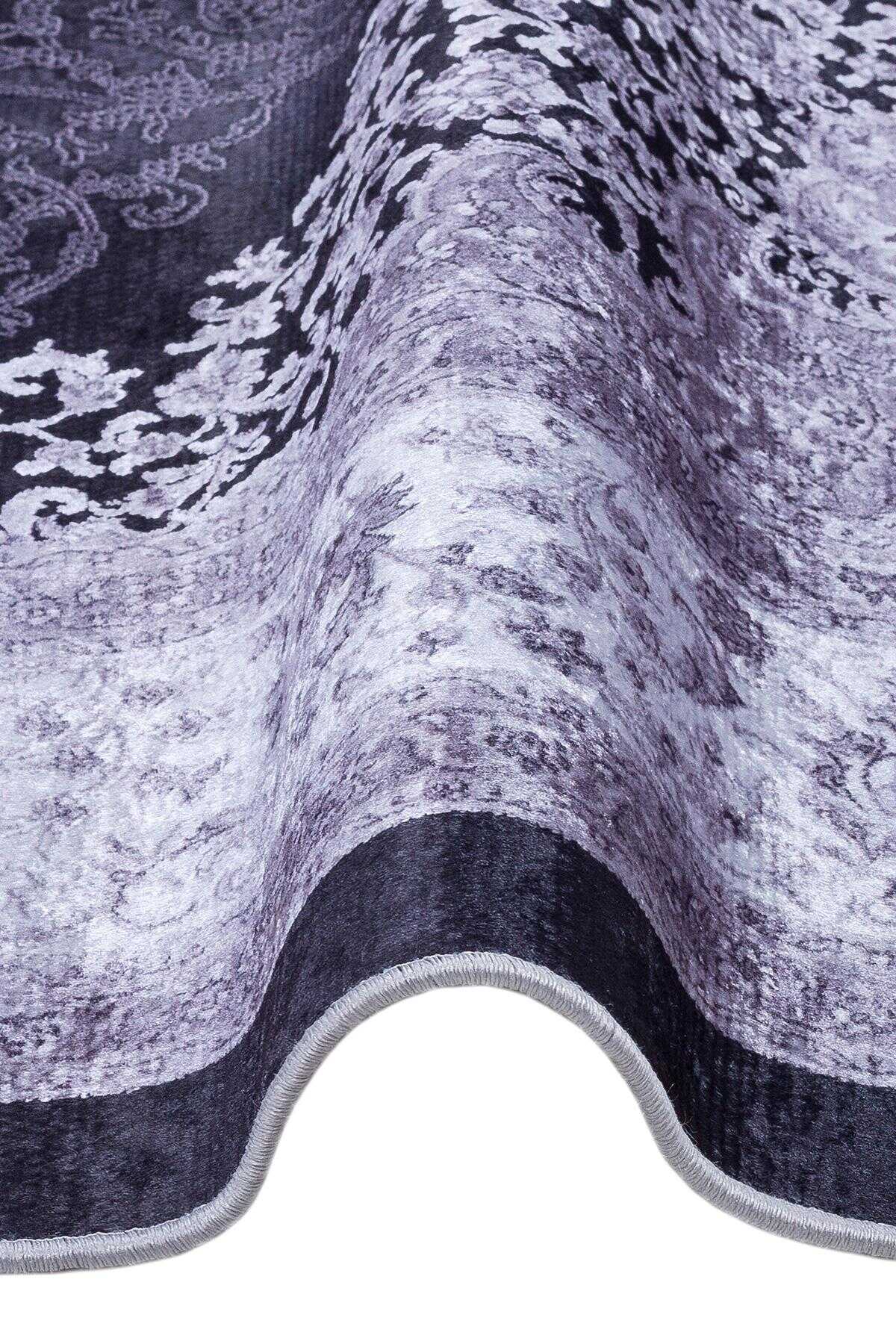 Klasik Desen Pamuk Taban Yıkanabilir Dijital Baskılı Halı Siyah