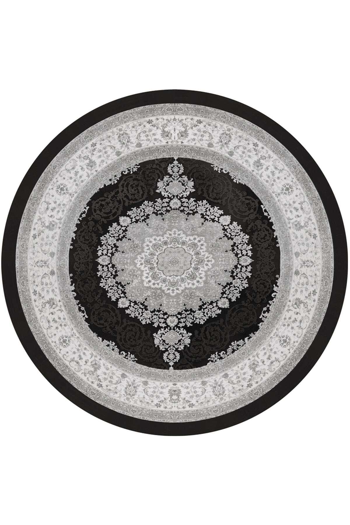 Klasik Desen Pamuk Taban Yıkanabilir Dijital Baskılı Yuvarlak Halı Siyah