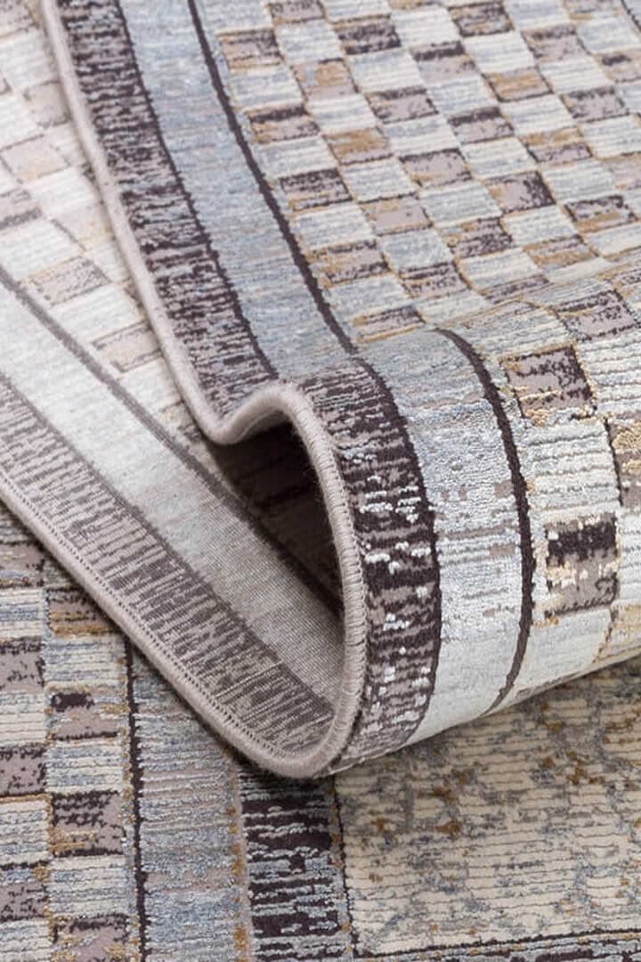 Lüks Viskon Kuvars Geometrik Eskitme 100 Tarak Halı Kv01 Krem