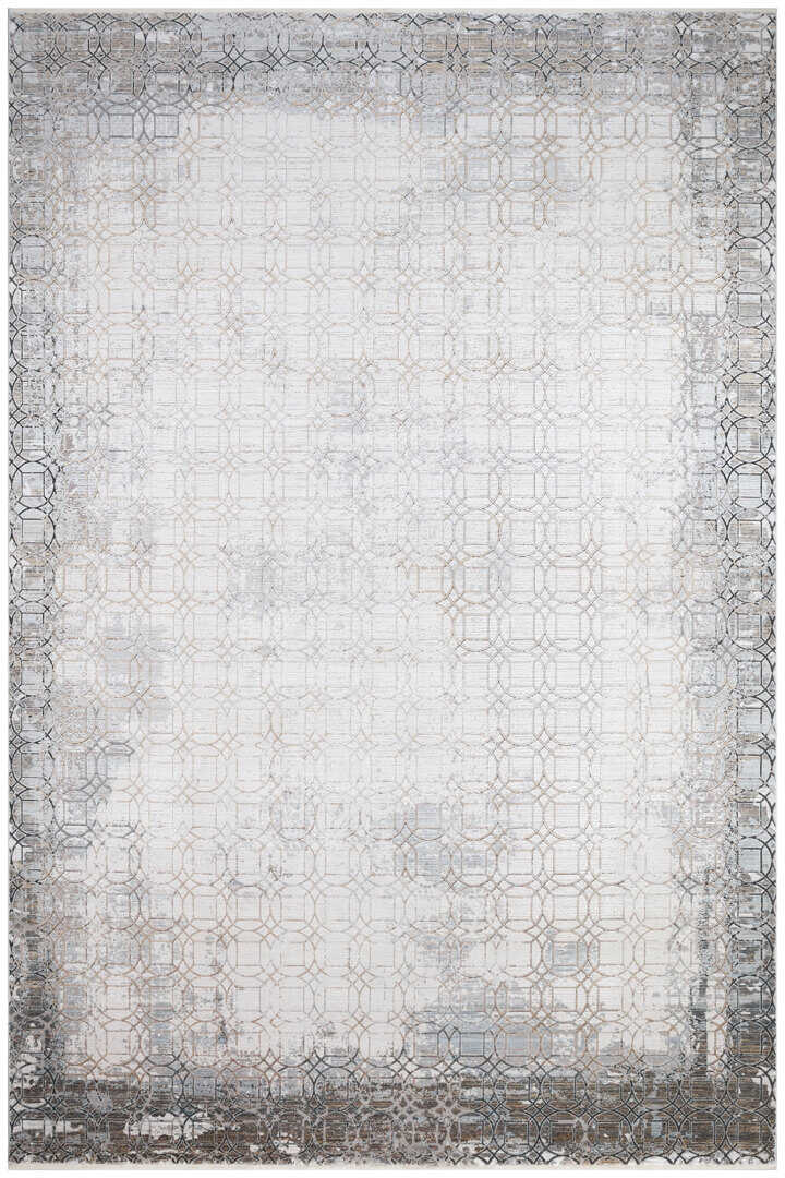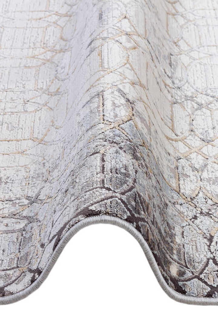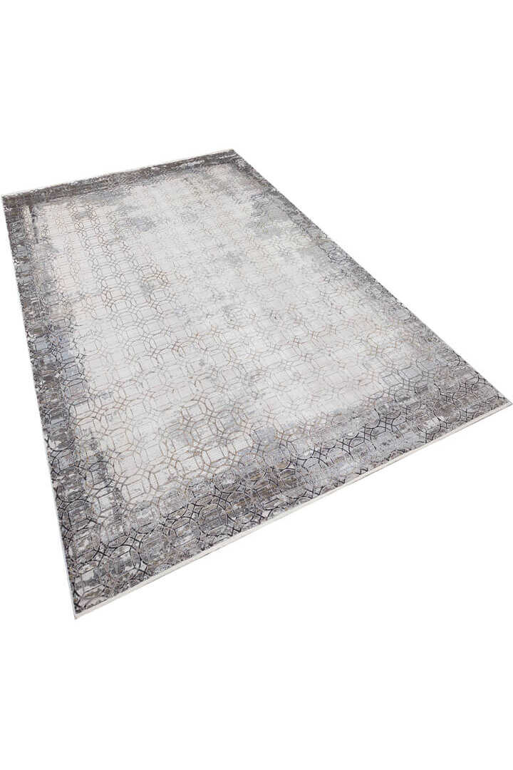 Lüks Viskon Kuvars Geometrik Eskitme 100 Tarak Halı Kv02 Krem