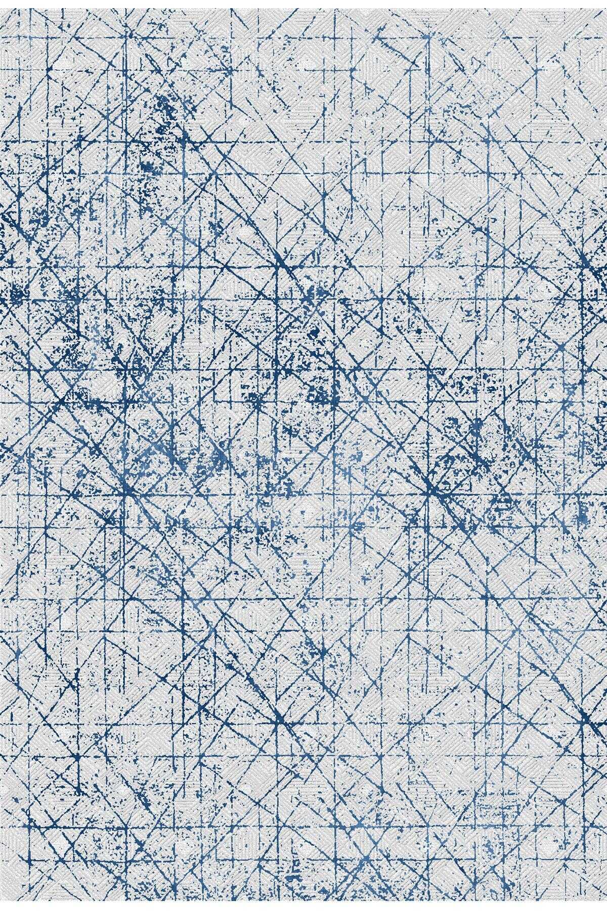 Modern Çizgi Desenli Pamuk Taban Dijital Baskılı Yıkanabilir Halı Mavi