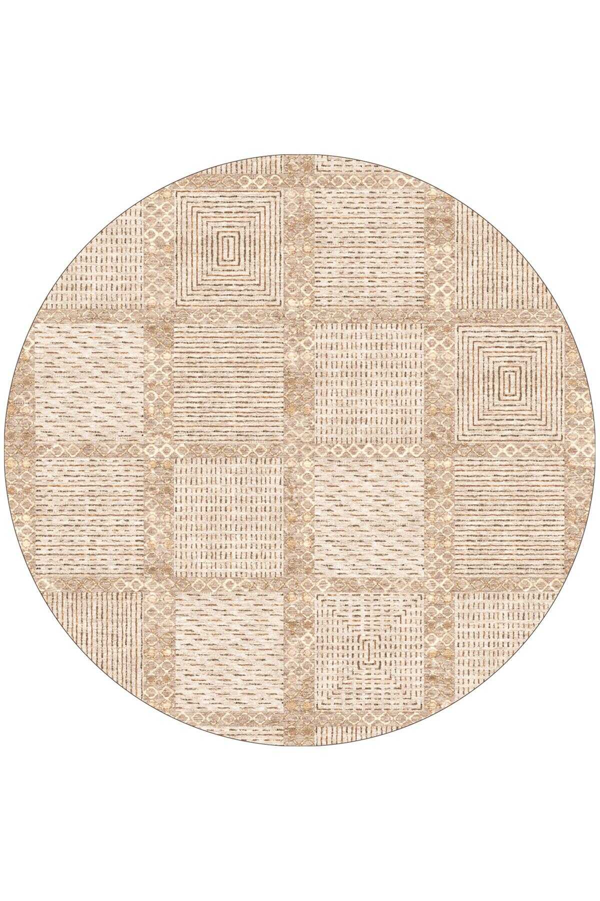 Modern Desen Dokuma Taban Yıkanabilir Yuvarlak Halı Bej