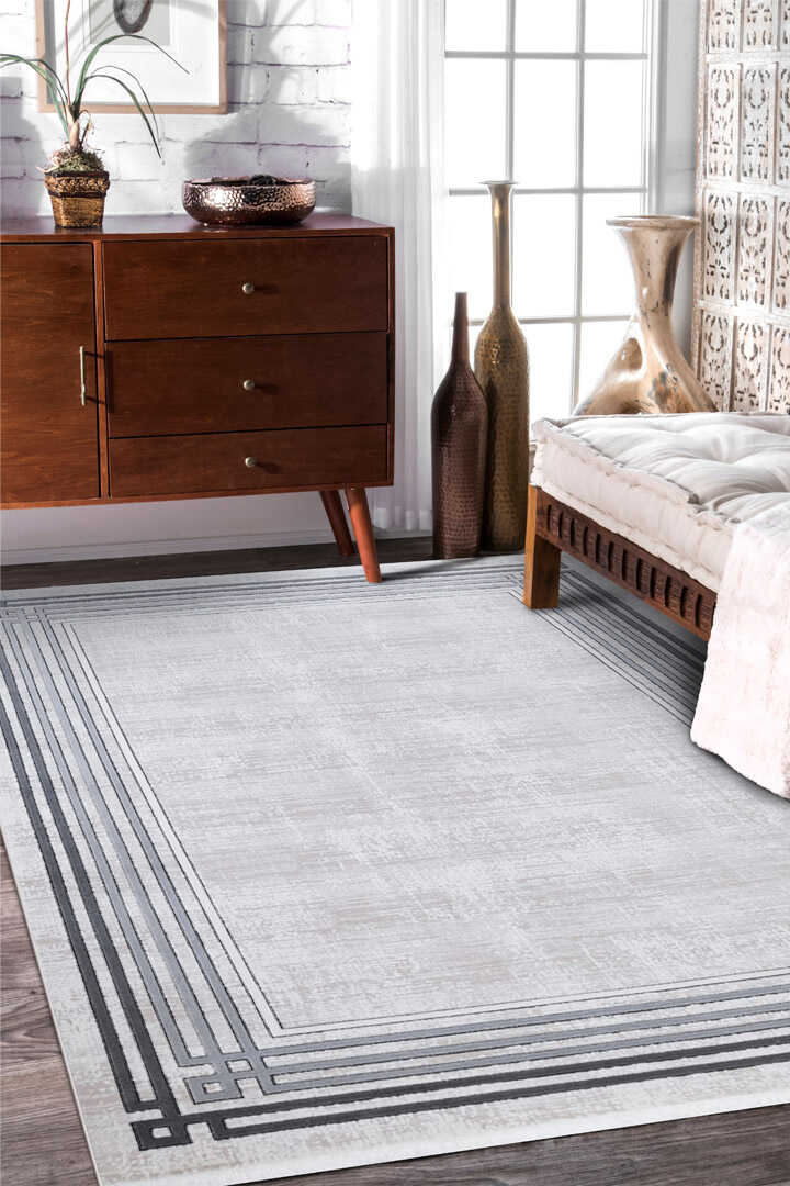 Bordürlü Gri Dekoratif Sisal Halı Siesta 1504