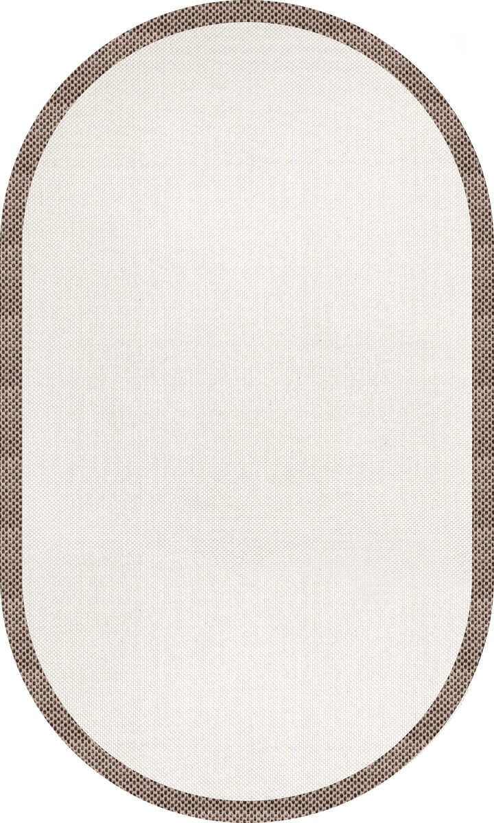 Natura Sisal Hasır Görünümlü Çerçeveli Oval Halı Ntr03 Kahve-Krem