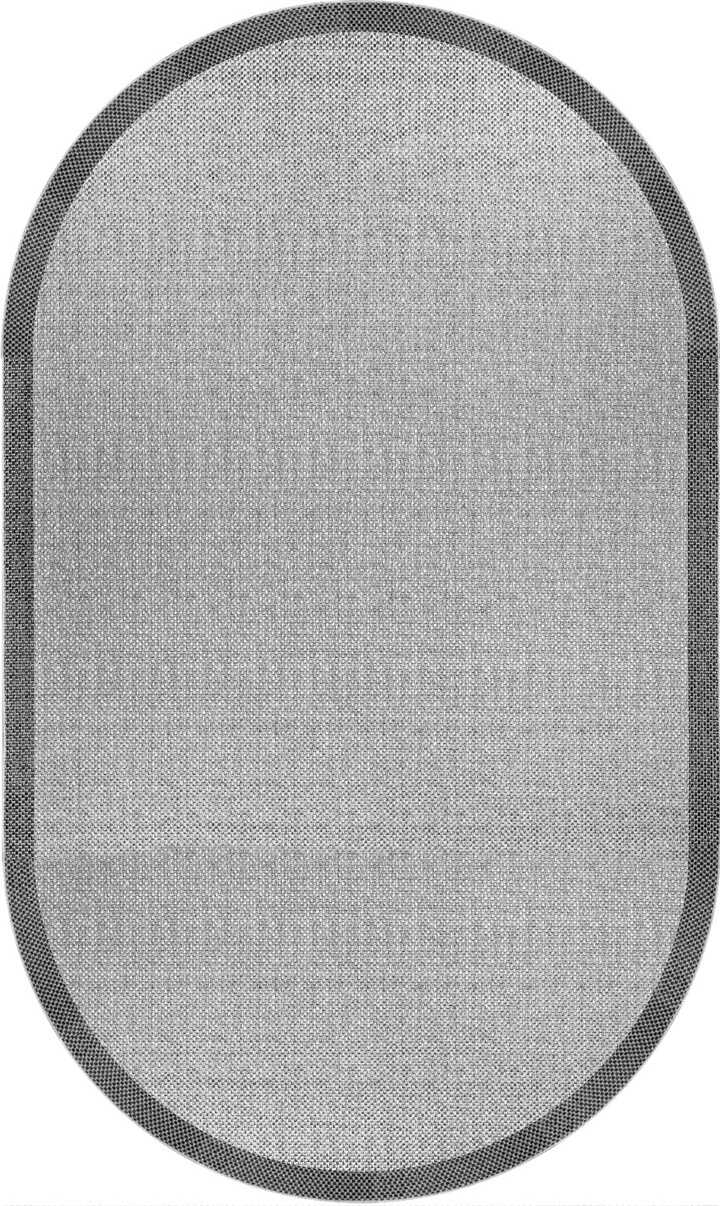 Natura Sisal Hasır Görünümlü Çerçeveli Oval Halı Ntr07 Antrasit-Gri