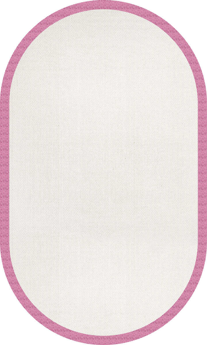 Natura Sisal Hasır Görünümlü Çerçeveli Oval Halı Ntr19 Fuşya-Krem