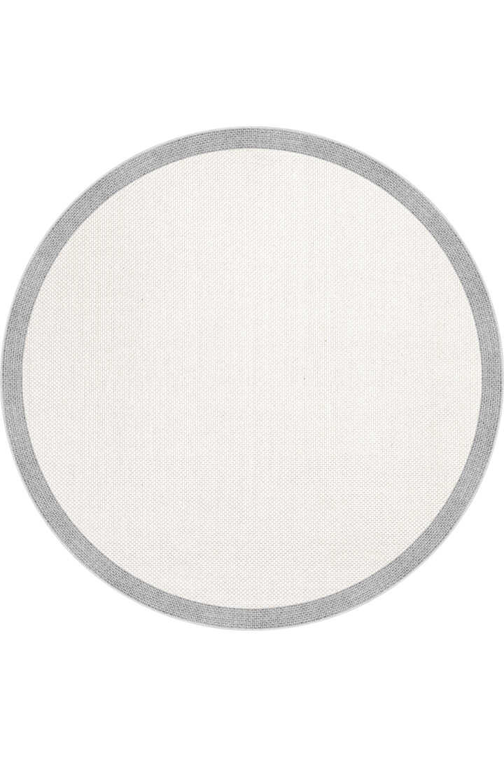 Natura Sisal Hasır Görünümlü Çerçeveli Yuvarlak Halı Ntr08 Gri-Krem