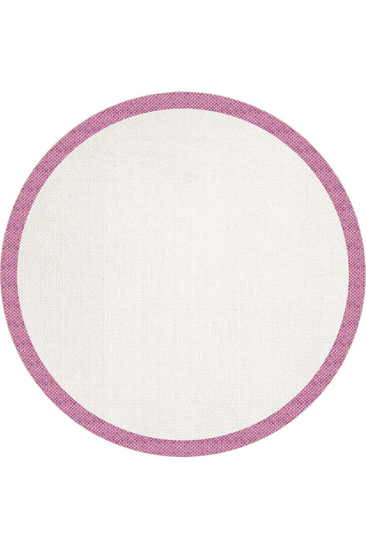 Natura Sisal Hasır Görünümlü Çerçeveli Yuvarlak Halı Ntr19 Fuşya-Krem