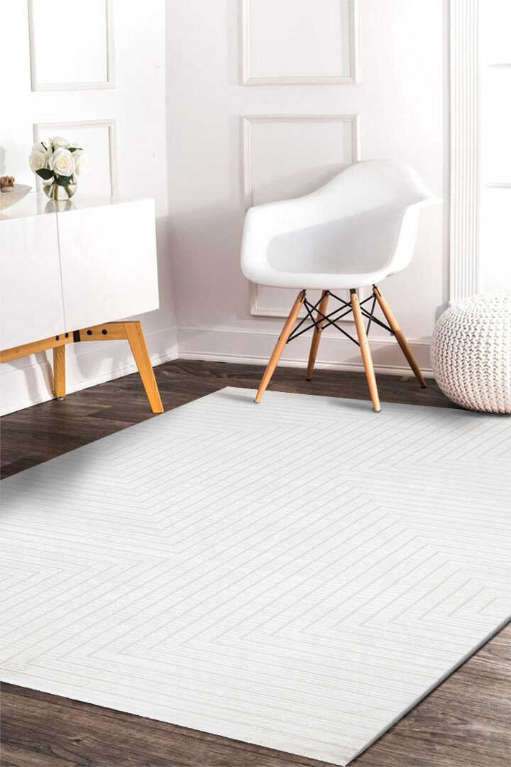 Naz Lüx Desenli Modern Halı Na01 Beyaz