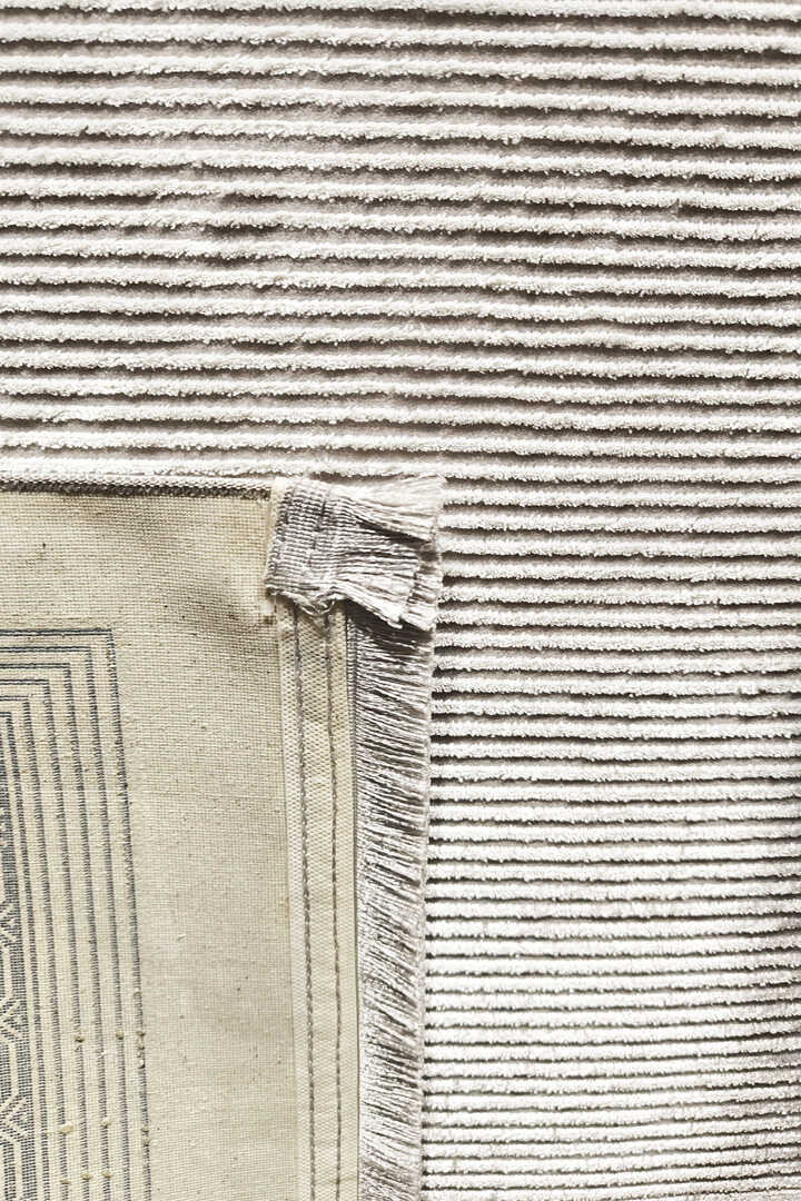 Parlak Saten Dokulu Poem Bambu Tuşe Klasik Çerçeve Desenli Halı Pm17 Beyaz