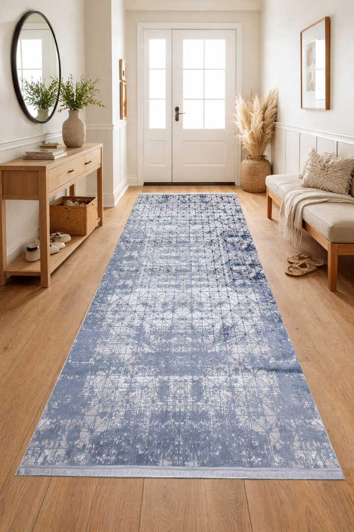 Parlak Saten Dokulu Poem Bambu Tuşe Modern Trend Halı Pm06 Mavi
