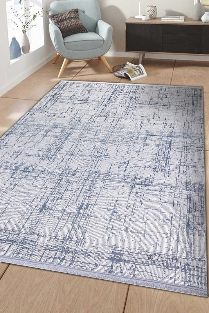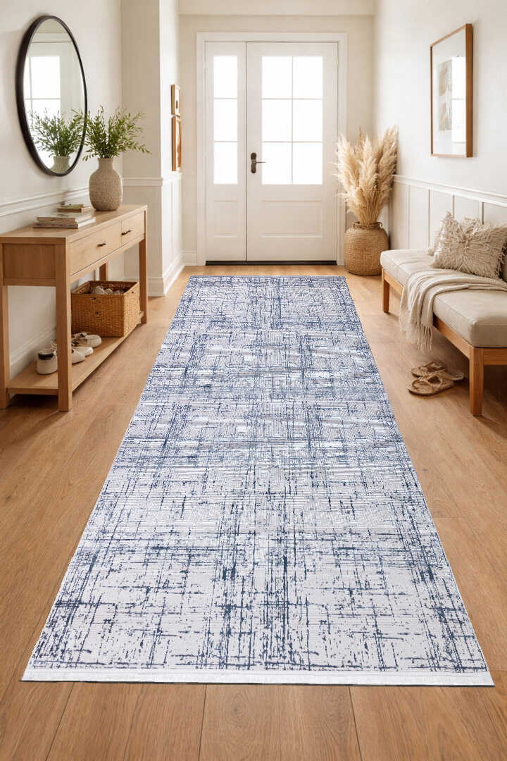 Parlak Saten Dokulu Poem Bambu Tuşe Modern Trend Yolluk Kesme Halı Pm07 Mavi