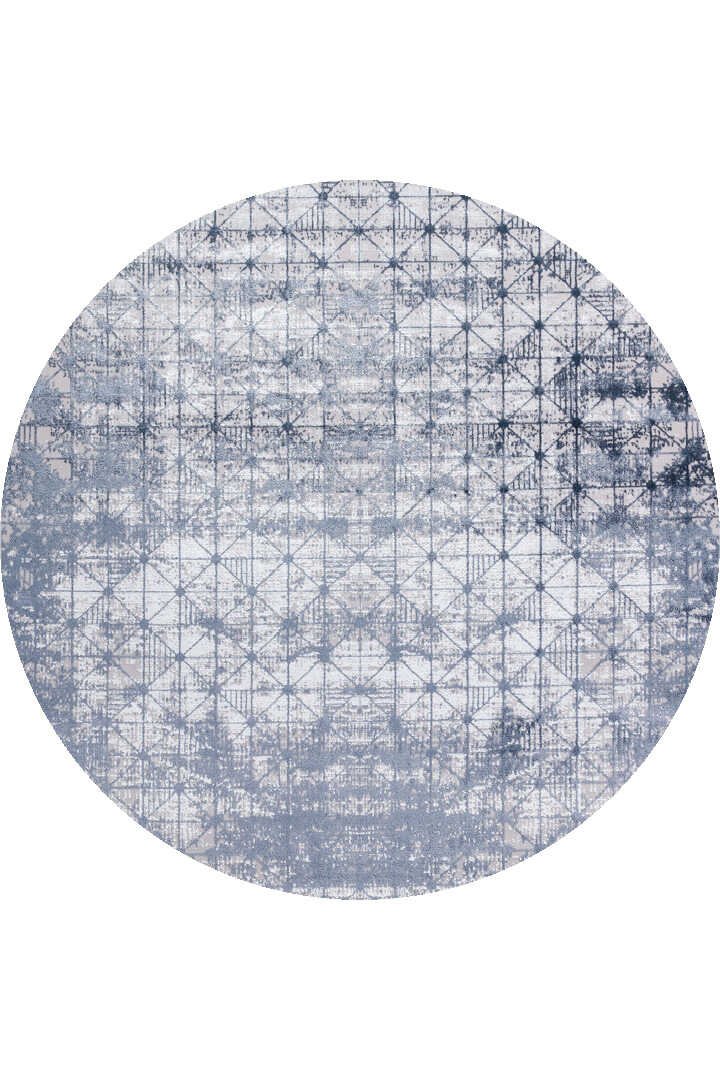 Parlak Saten Dokulu Poem Bambu Tuşe Modern Trend Yuvarlak Halı Pm06 Mavi