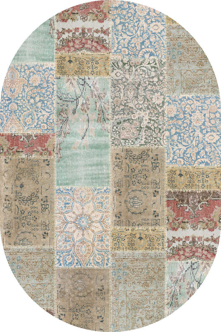 Patchwork Desenli Dokuma Pamuk Taban Dekoratif Dijital Oval Halı