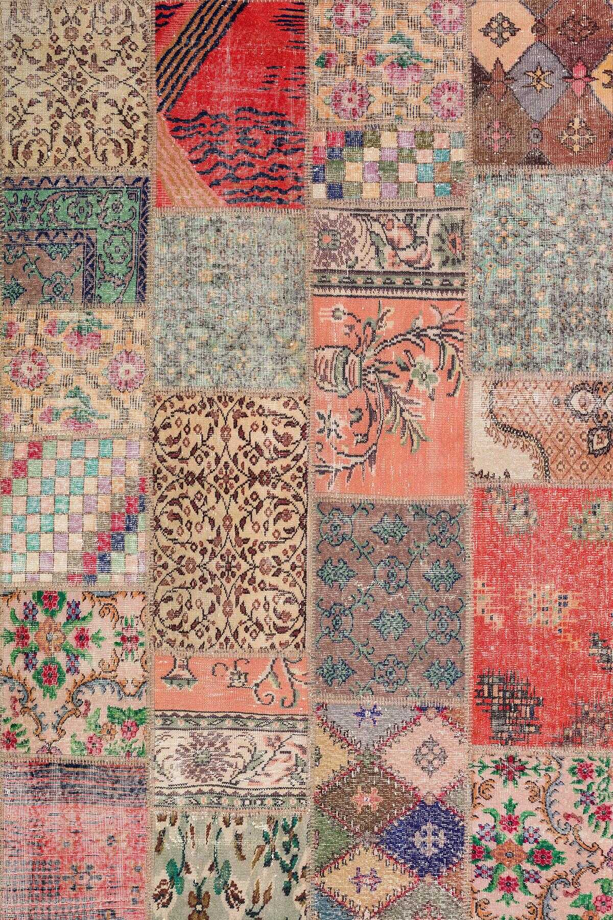 Patchwork Desenli Pamuk Taban Dijital Baskılı Yıkanabilir Halı Kiremit