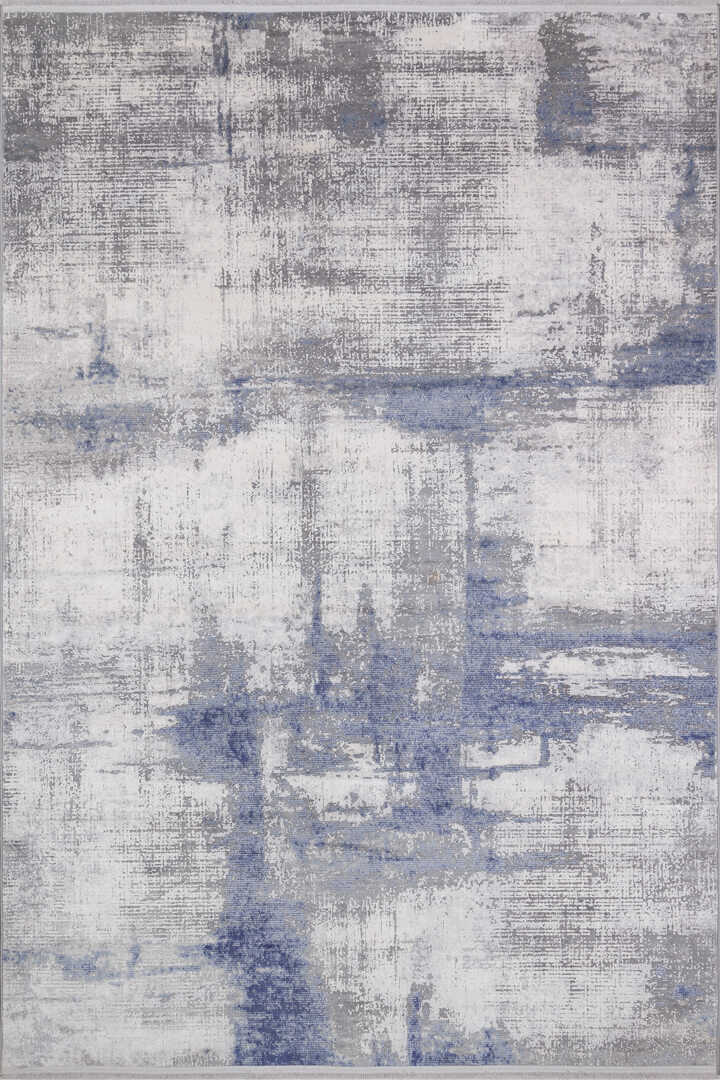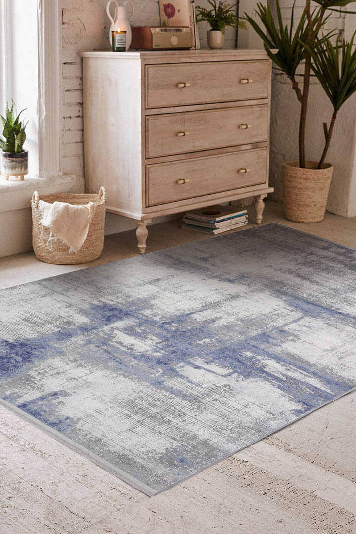 Modern Desen Kaymaz Deri Taban Yıkanabilir Dijital Baskılı Halı Mavi