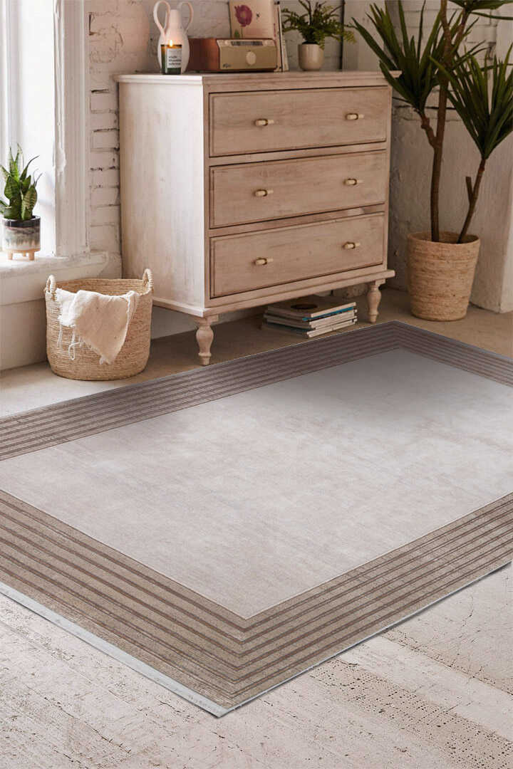 Modern Desen Kaymaz Deri Taban Yıkanabilir Dijital Baskılı Halı Kahve